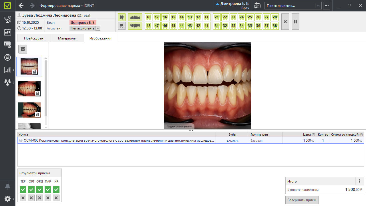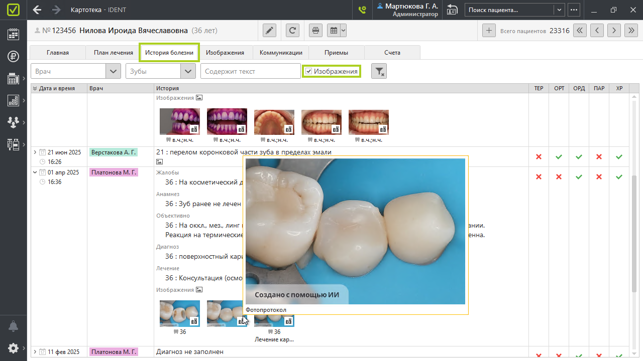 С помощью фотопротоколов и рентген-снимков на вкладке «Изображения» при проверке случая обслуживания главврач контролирует, правильно ли врач выбрал лечение и насколько качественно его провел.