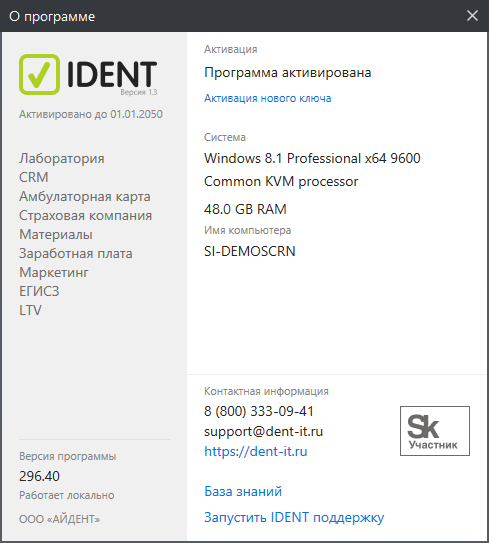 Обычно для комфортной работы IDENT требуется компьютер с 8 Гб оперативной памяти. Системные требования